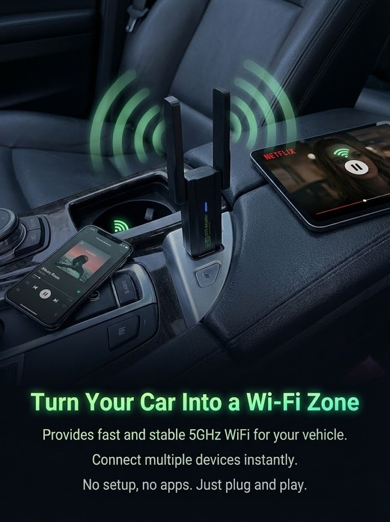 Absolutely! CarPoint™ 5.0 GHz is fully plug-and-play—simply connect it to your car’s USB port and it instantly broadcasts WiFi. No apps, no settings, no complicated steps.
